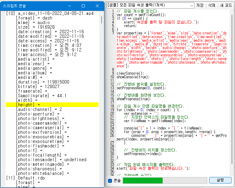 - [버그] 오디오 없는 비디오 파일 확장 속성 출력 오류